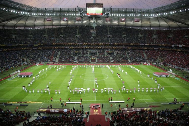 Slávnostný ceremoniál na Národnom štadióne vo Varšave pred finálovom zápasom Európskej ligy medzi FC Sevilla a Dniprom Dnipropetrovsk. Varšava, 27. máj 2015. Foto: SITA/AP