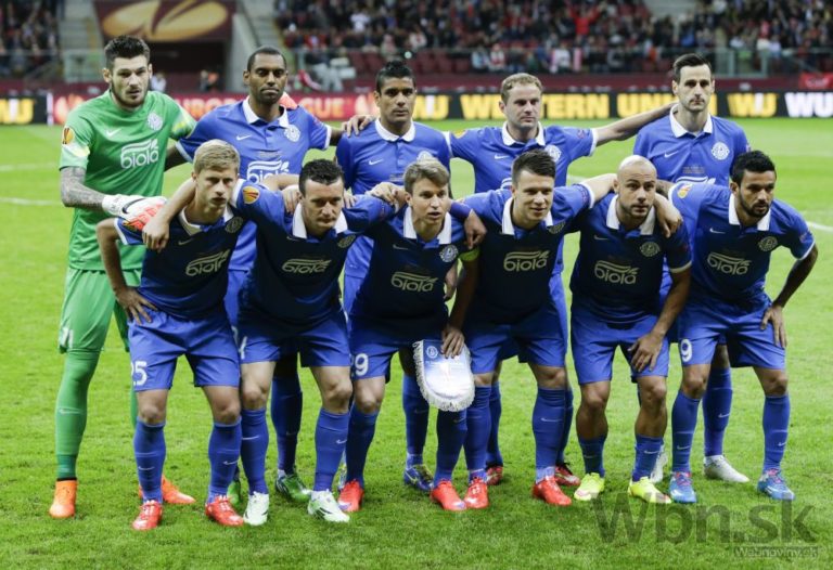 Hráči Dnipra Dnipropetrovsk na Národnom štadióne vo Varšave pred finálovým zápasom Európskej ligy. Varšava, 27. máj 2015. Foto: SITA/AP
