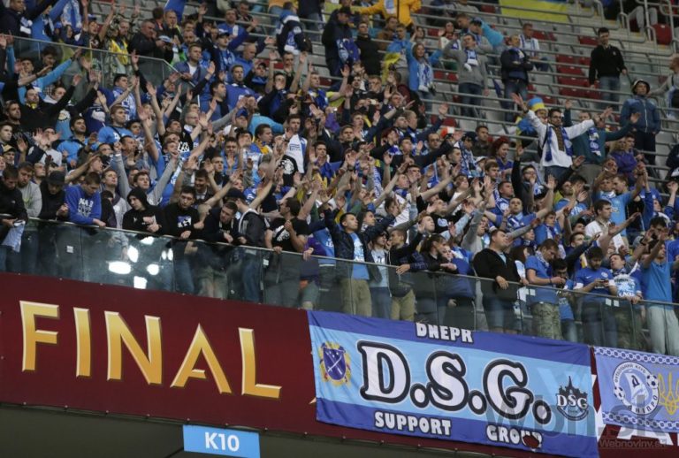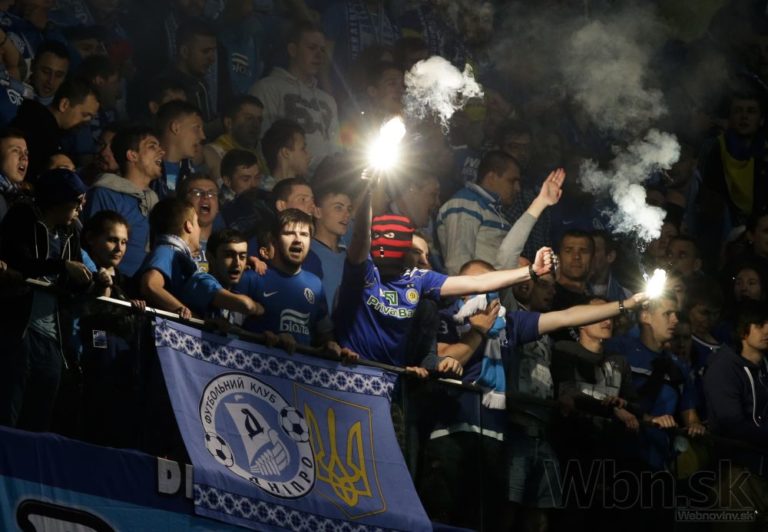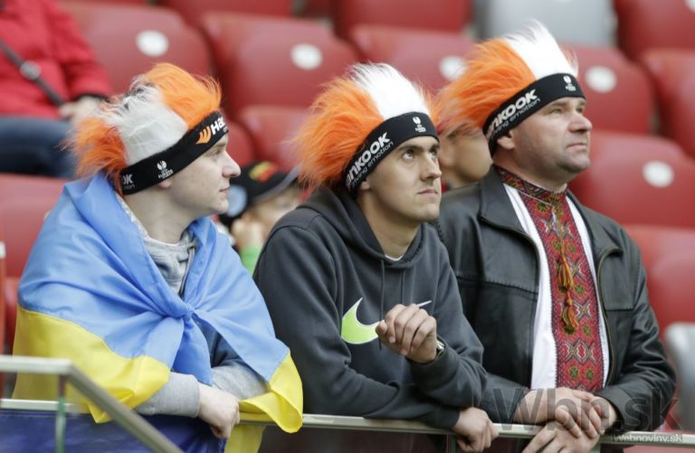 Fanúšikovia Dnipra Dnipropetrovsk počas finálového zápasu Európskej ligy. Varšava, 27. máj 2015. Foto: SITA/AP