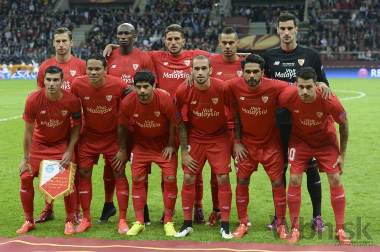 Hráči FC Sevilla pred finálovým zápasom Európskej lige na Národnom štadióne vo Varšave. Varšava, 27. máj 2015. Foto: SITA/AP