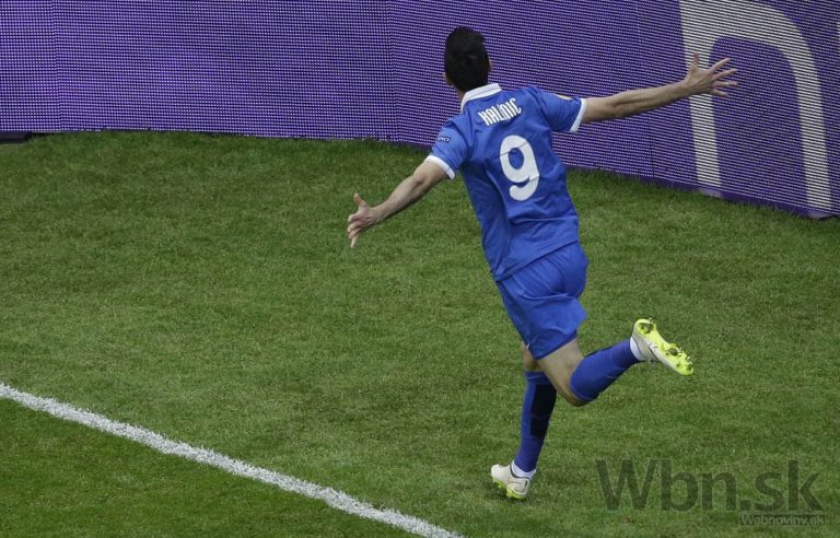Útočník Dnipra Dnipropetrovsk Nikola Kalinič sa teší z gólu v sieti FC Sevilla počas finálového zápasu Európskej ligy. Varšava, 27. máj 2015. Foto: SITA/AP