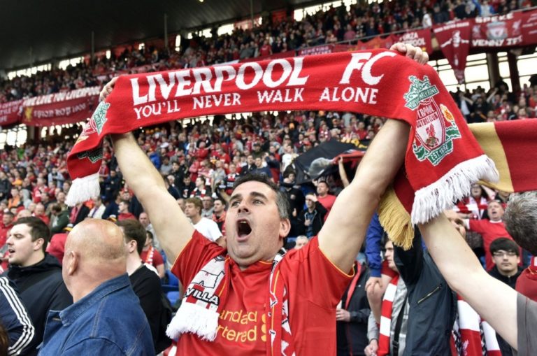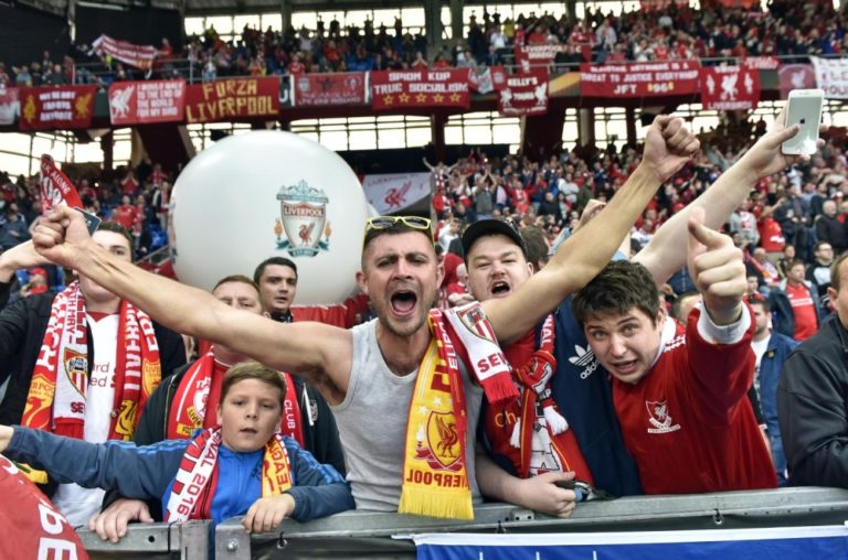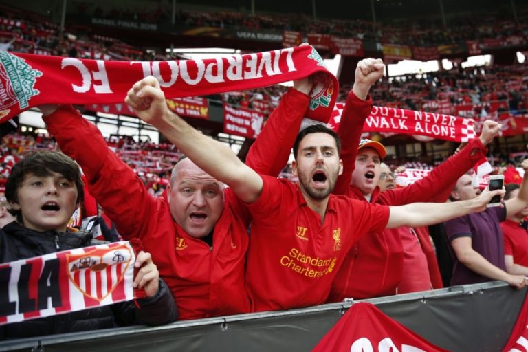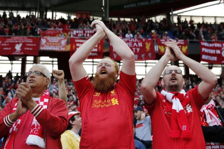 Fanúšikovia FC Liverpool počas finálového zápasu Európskej ligy na Štadióne sv. Jakuba v Bazileji. Bazilej, 18. máj 2016. Foto: Peter Klaunzer/Keystone via AP