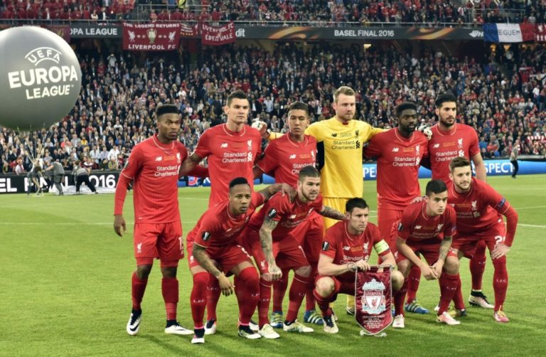 Hráči FC Liverpool pred finálovým zápasom Európskej ligy na Štadióne sv Jakuba v Bazileji. Bazilej, 18. máj 2016. Foto: SITA/AP