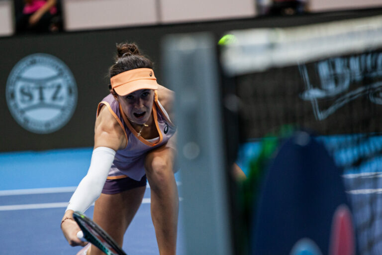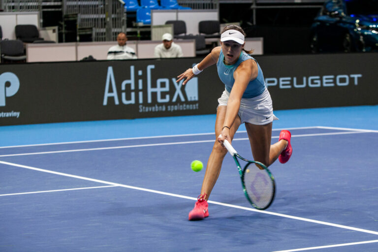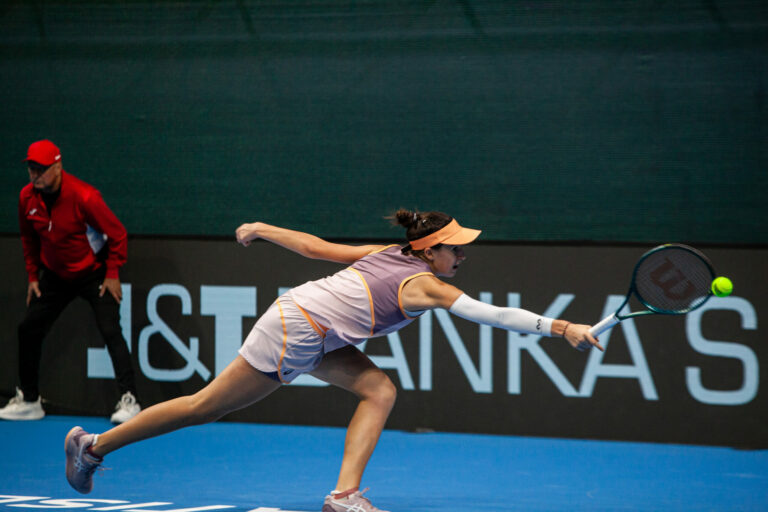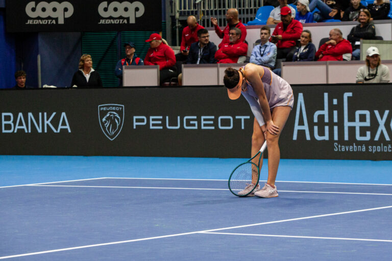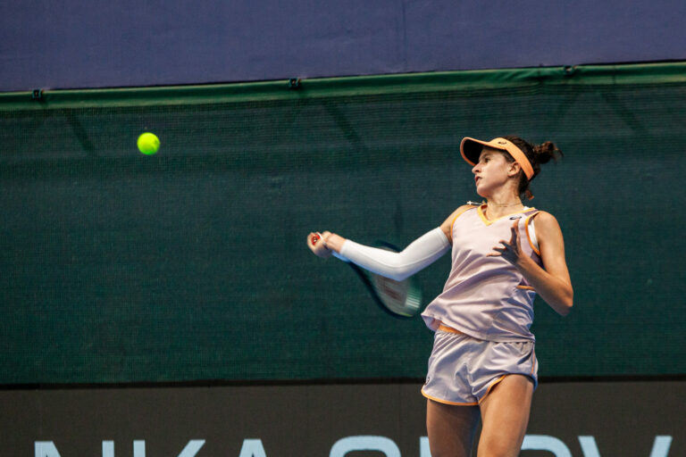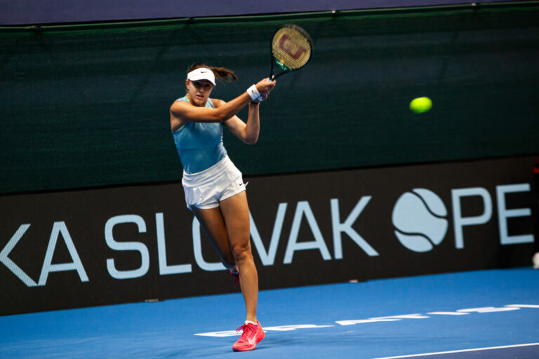 Mia Pohánková počas finálového zápasu ženskej dvojhry turnaja J&T Banka Slovak Open 2024 v Peugeot aréne v Bratislave. Bratislava, 13. október 2024. Foto: SITA/Tomáš Bokor.
