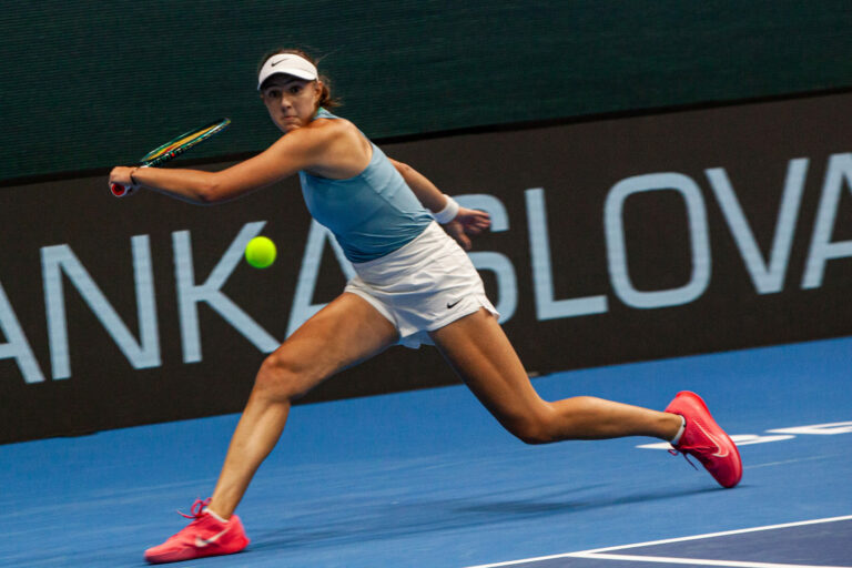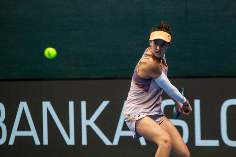 Mia Pohánková počas finálového zápasu ženskej dvojhry turnaja J&T Banka Slovak Open 2024 v Peugeot aréne v Bratislave. Bratislava, 13. október 2024. Foto: archívne, SITA/Tomáš Bokor.