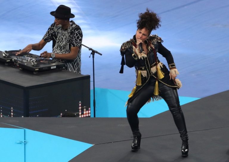 Vystúpenie Alicie Keys pred finálovým zápasom Ligy majstrov medzi Realom a Atléticom na milánskom štadióne San Siro. Miláno, 28. máj 2016. Foto: SITA/AP