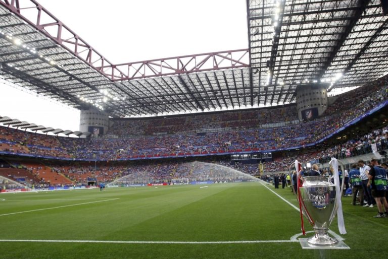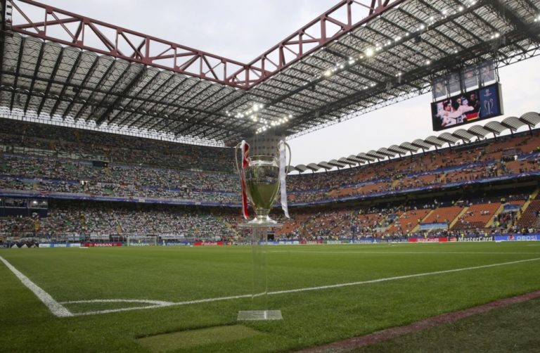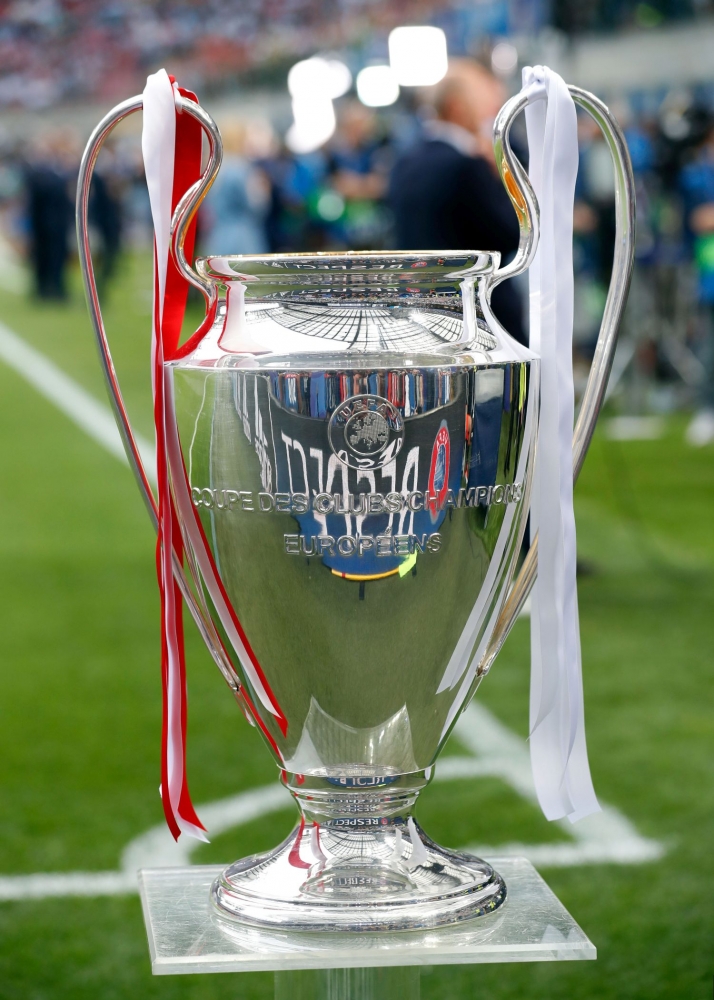 Trofej pre víťaza Ligy majstrov pred finálovým zápasom medzi madridskými klubmi Realom a Atlétcom na milánskom štadióne San Siro. Miláno, 28. máj 2016. Foto: SITA/AP