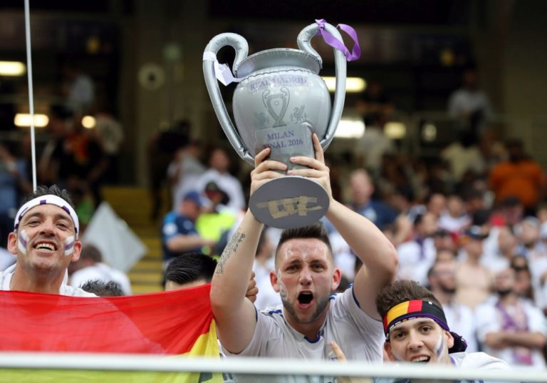 Fanúšikovia Realu Madrid počas finálového zápasu Ligy majstrov na milánskom San Sire. Miláno, 28. máj 2016. Foto: SITA/AP