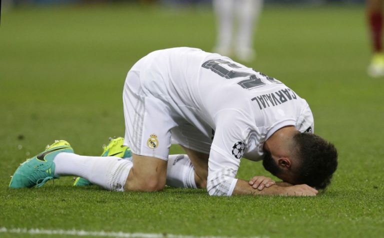 Zranený Dani Carvajal z Realu Madrid počas finálového zápasu Ligy majstrov na štadióne San Siro v Miláne. Miláno, 28. máj 2016. Foto: SITA/AP