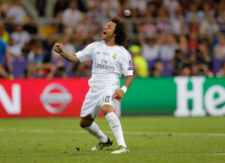 Radosť Marcela po premenenom pokutovom kope v penaltovom rozstrele počas finále Ligy majstrov, v ktorom Real Madrid zdolal mestského rivala Atlético. Miláno, 28. máj 2016. Foto: SITA/AP