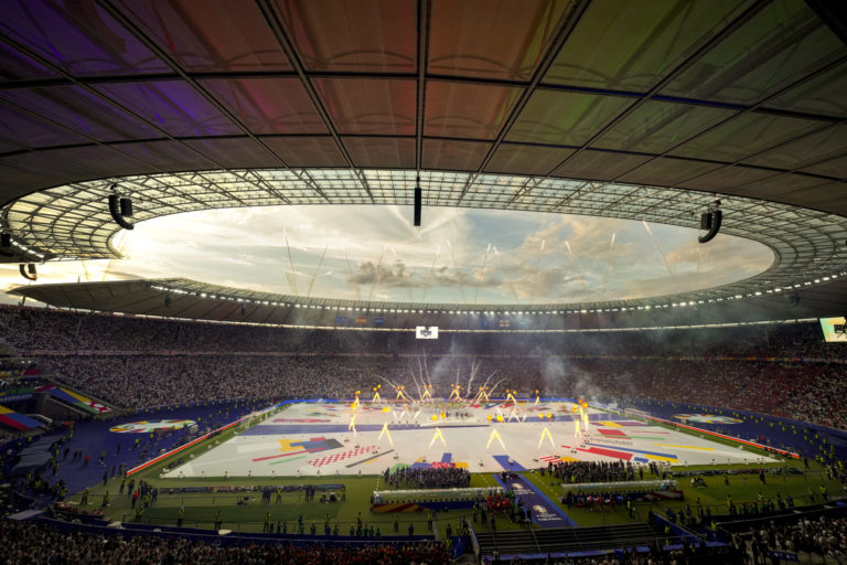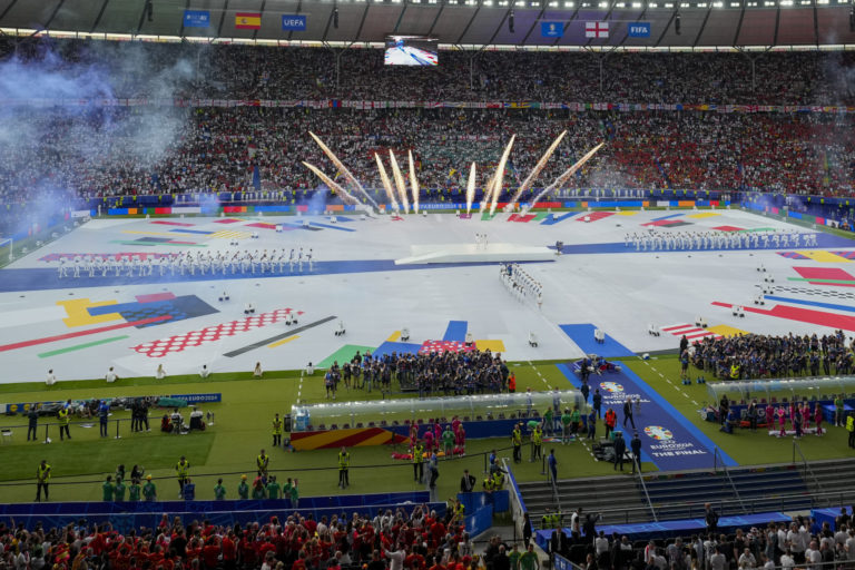 Úvodný ceremoniál finálového zápasu ME vo futbale 2024 medzi Španielskom a Anglickom. Berlín, 14. júl 2024. Foto: SITA/AP.