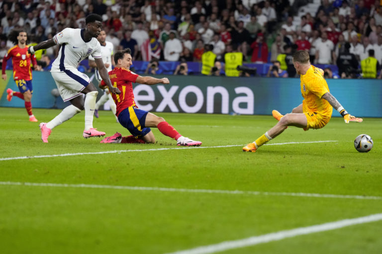 Anglický brankár Jordan Pickford počas finálového zápasu na ME vo futbale 2024 proti Španielsku. Berlín, 14. júl 2024. Foto: SITA/AP.