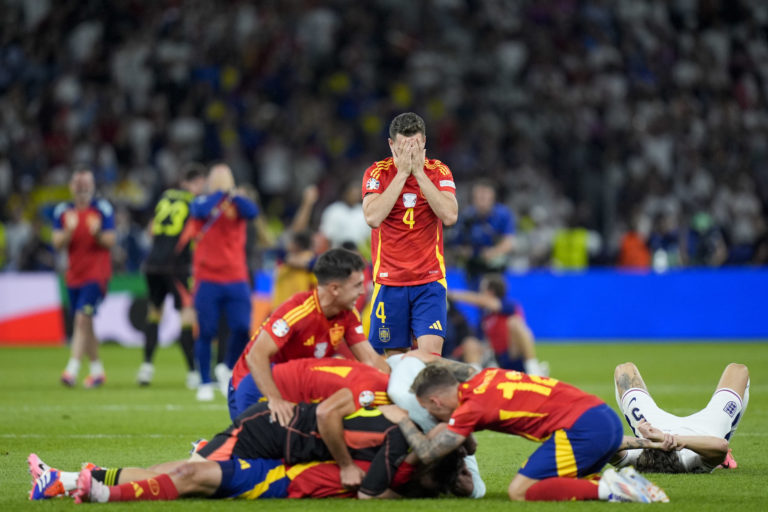 Radosť španielskych reprezentantov po finálovom triumfe nad Anglickom na ME vo futbale 2024. Berlín, 14. júl 2024. Foto: SITA/AP.