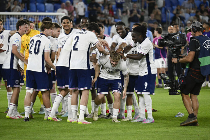 Radosť hráčov z Anglicka po finálovom zápase v rámci 25. majstrovstiev Európy 2025 vo futbale hráčov do 21 rokov EURO U21 2025 medzi Anglicko - Nemecko. Bratislava, 28. jún 2025. Foto: SITA/Milan Illík