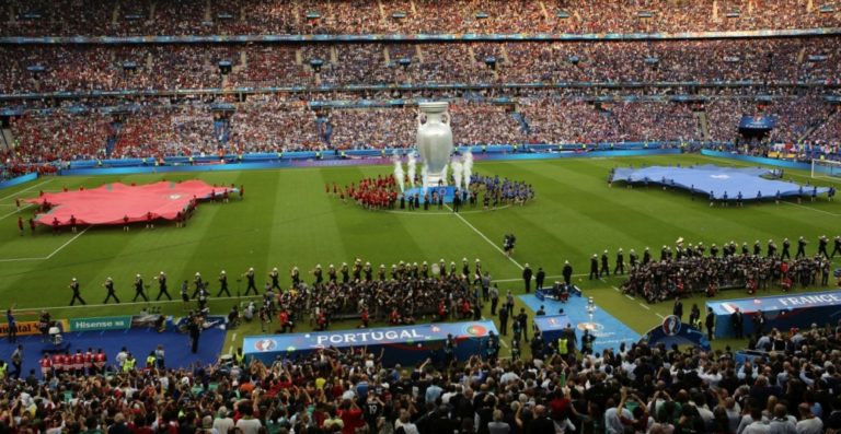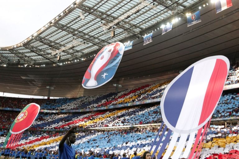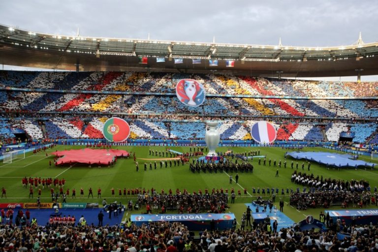 Slávnostný úvod finálového zápasu XV. majstrovstiev Európy vo futbale medzi Portugalskom a Francúzskom. Paríž, 10. júl 2016. Foto: SITA/AP
