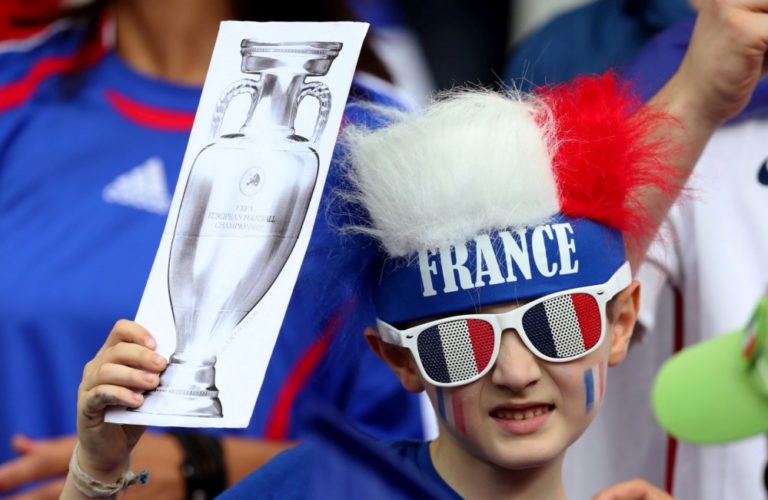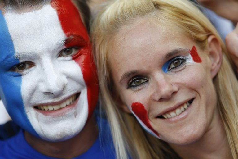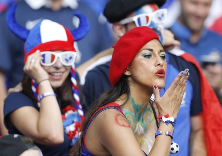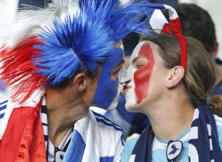 Fanúšikovia 'Les Bleus' pred finálovým zápasom ME vo futbale 2016 medzi Francúzskom a Portugalskom. Paríž, 10. júl 2016. Foto: SITA/AP