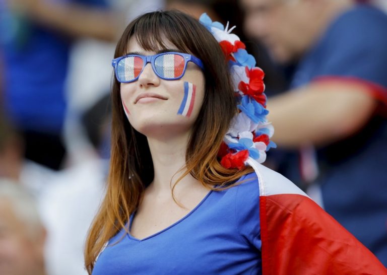Francúzska fanúšička pred finálovým zápasom ME vo futbale 2016. Paríž, 10. júl 2016. Foto: SITA/AP