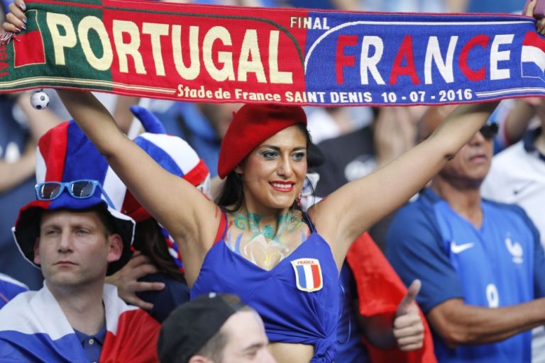 Fanúšikovia pred finálovým zápasom ME vo futbale medzi Portugalskom a Francúzskom. Paríž, 10. júl 2016. Foto: SITA/AP