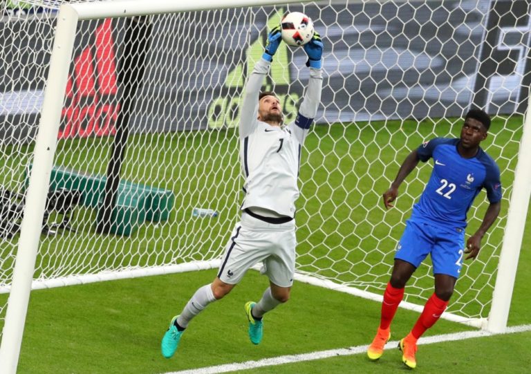 Zákrok francúzskeho brankára Huga Llorisa počas finálového zápasu na majstrovstvách Európy. Paríž, 10. júl 2016. Foto: SITA/AP