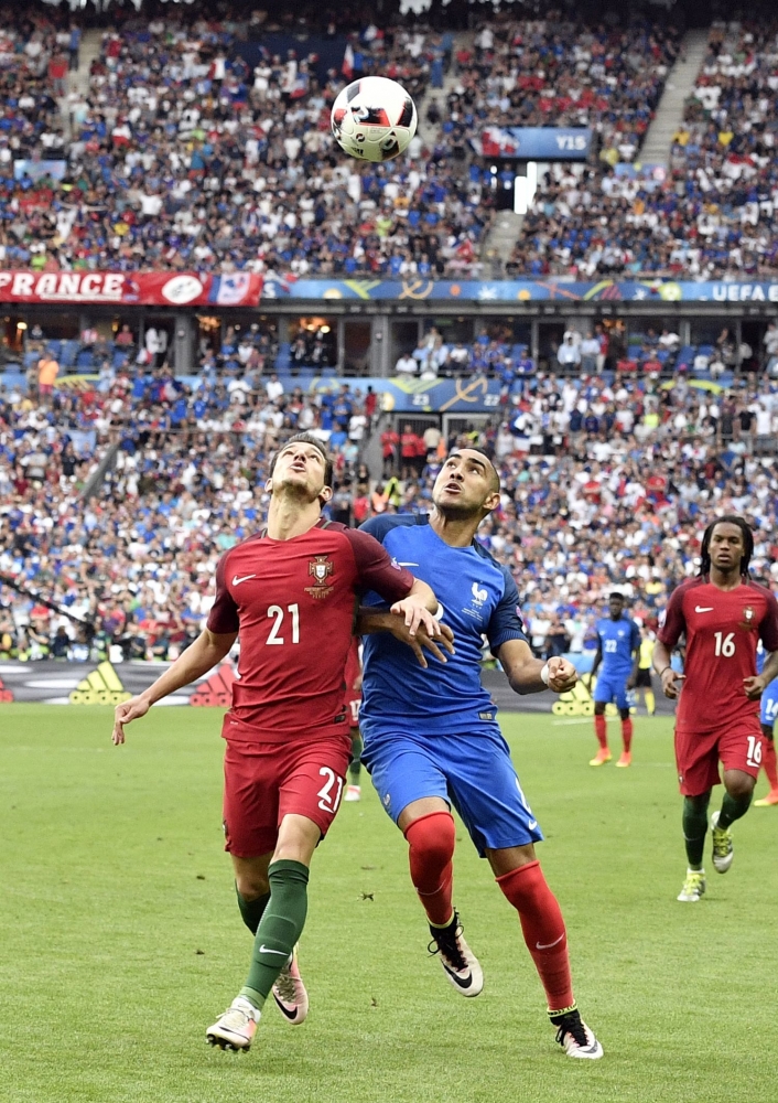 Francúz Dimitri Payet v súboji s portugalským futbalistom Nanim počas finálového zápasu na majstrovstvách Európy. Paríž, 10. júl 2016. Foto: SITA/AP