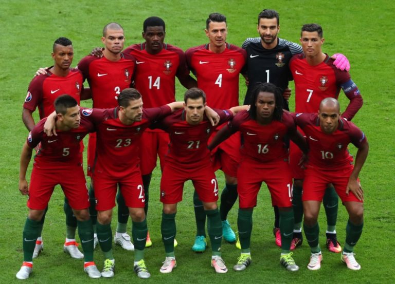 Portugalskí futbalisti pred finálovým zápasom XV. majstrovstiev Európy proti Francúzsku. Paríž, 10. júl 2016. Foto: SITA/AP
