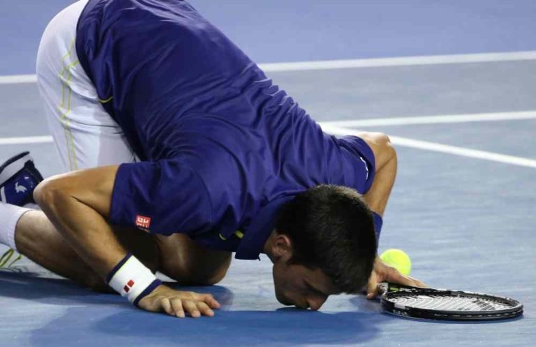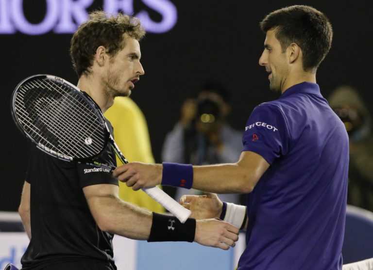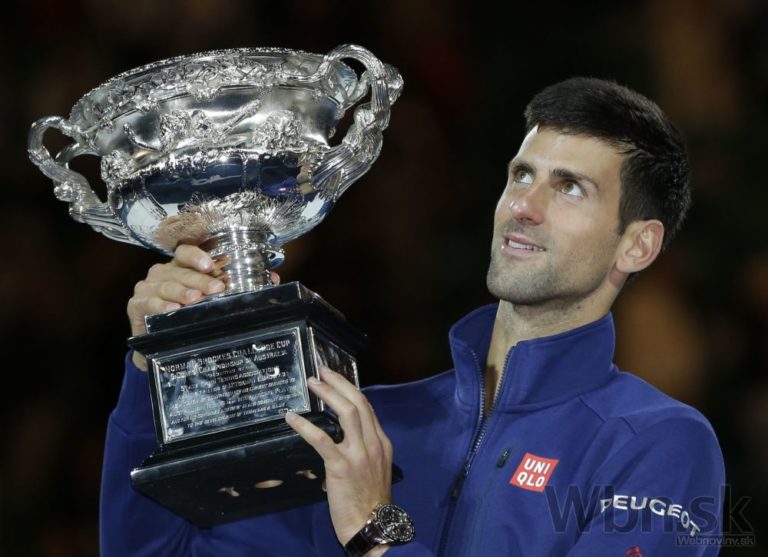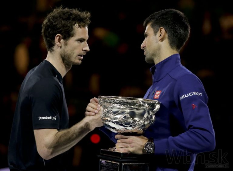 Srb Novak Djokovič zvíťazil nad Britom Andym Murraym v nedeľňajšom finále dvojhry na melbournských grandslamových Australian Open za 173 minút 6:1, 7:5, 7:6 (3). Foto: SITA/AP