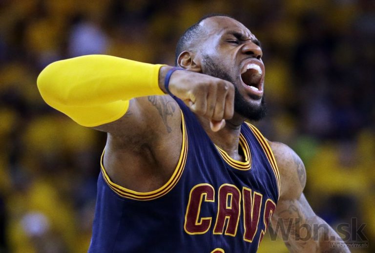LeBron James (23) z Clevelandu oslavuje úspešný zásah na kôš počas druhého zápasu NBA v Oaklande, California, Nedeľa, 7. júna 2015. Foto: SITA/AP
