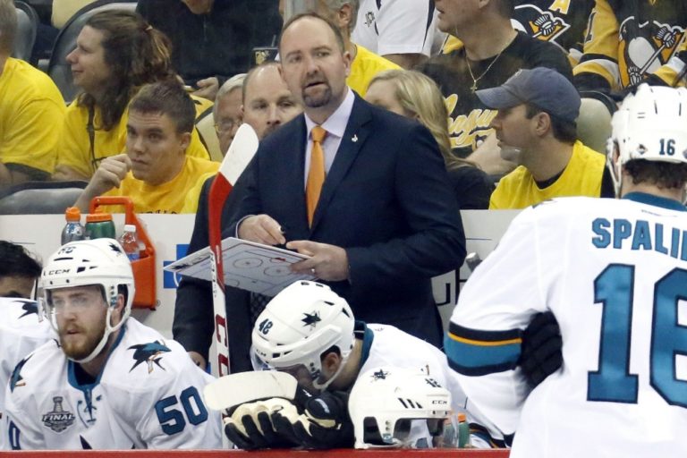 Tréner San Jose Sharks Peter DeBoer počas prvého finálového zápasu NHL. Pittsburgh, 30. máj 2016. Foto: SITA/AP