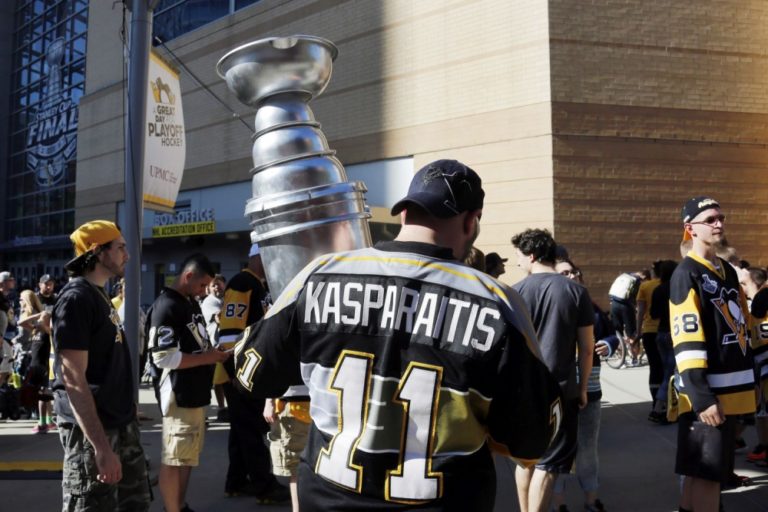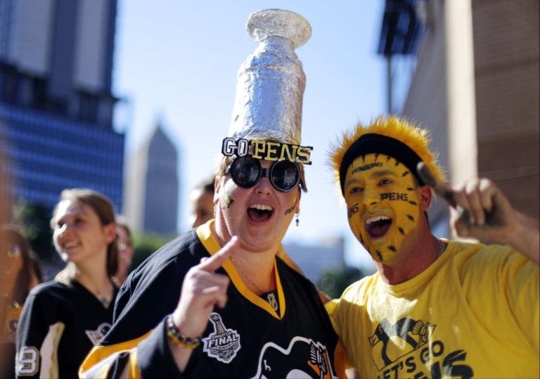Fanúšikovia Pittsburghu Penguins pred piatym finálovým zápasom NHL. Pittsburgh, 9. jún 2016. Foto: SITA/AP