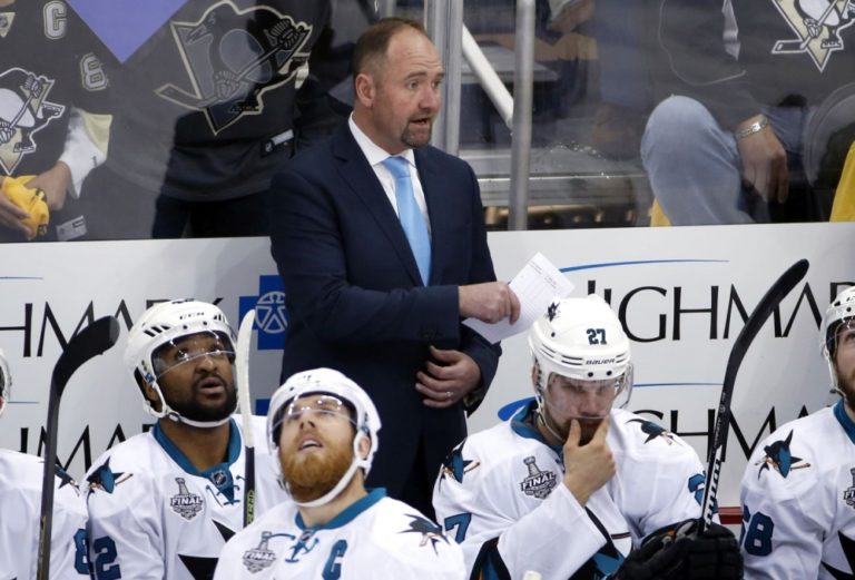 Tréner San Jose Sharks Peter DeBoer počas piateho finálového zápasu NHL. Pittsburgh, 9. jún 2016. Foto: SITA/AP