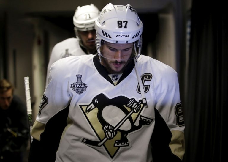 Kapitán Pittsburghu Penguins Sidney Crosby počas šiesteho finálového zápasu NHL, v ktorom jeho tím vyhral na ľade San Jose Sharks 3:1 a získal Stanleyho pohár. San Jose, 12. jún 2016. Foto: SITA/AP