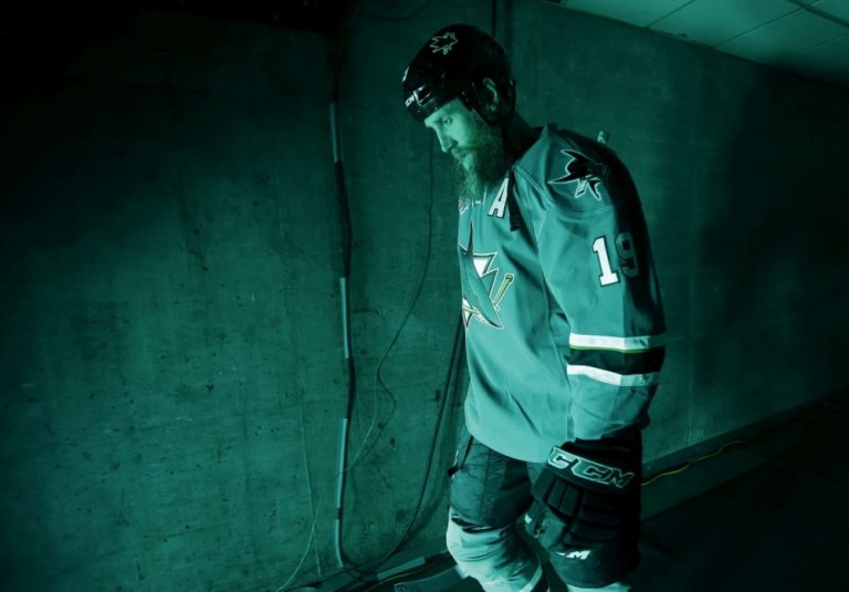 Útočník San Jose Sharks Joe Thornton (19) pred šiestym finálovým zápasom NHL, v ktorom 'žraloci' podľahli Pittsburghu 1:3. San Jose, 12. jún 2016. Foto: SITA/AP