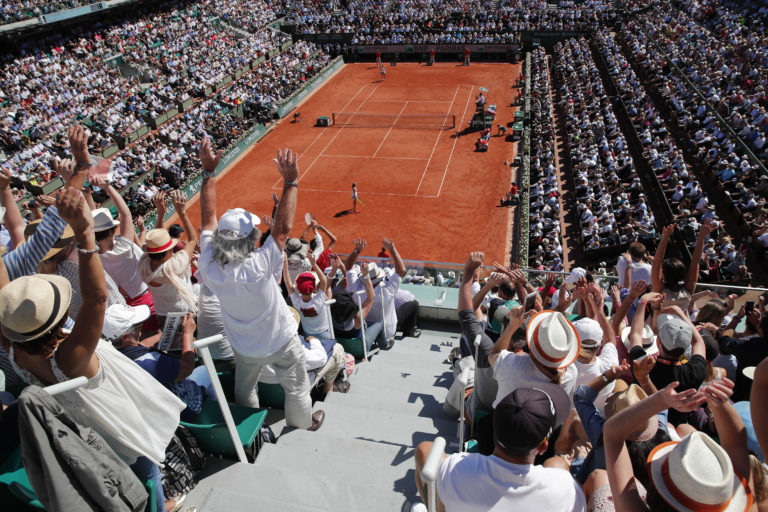 Diváci sledujú finále Roland Garros medzi Simonou Halepovou a Jelenou Ostapenkovou. Paríž, 10. jún 2017. Foto: SITA/AP.