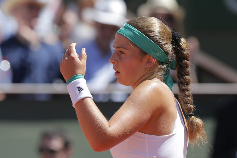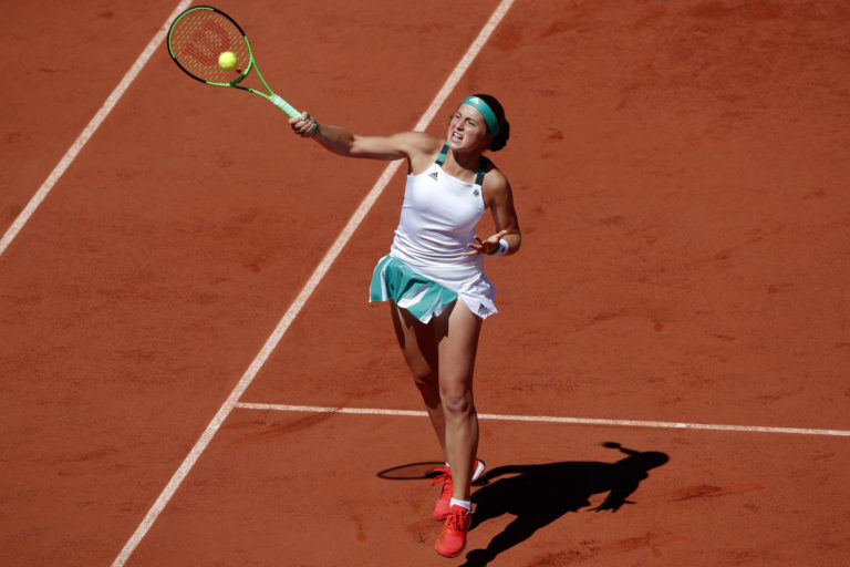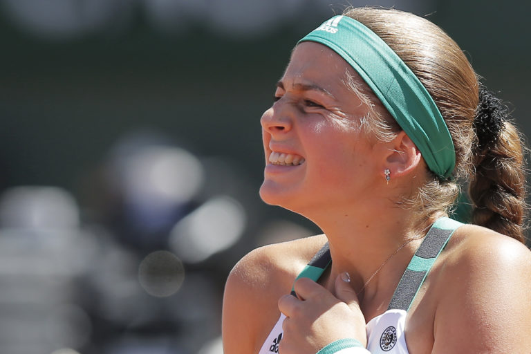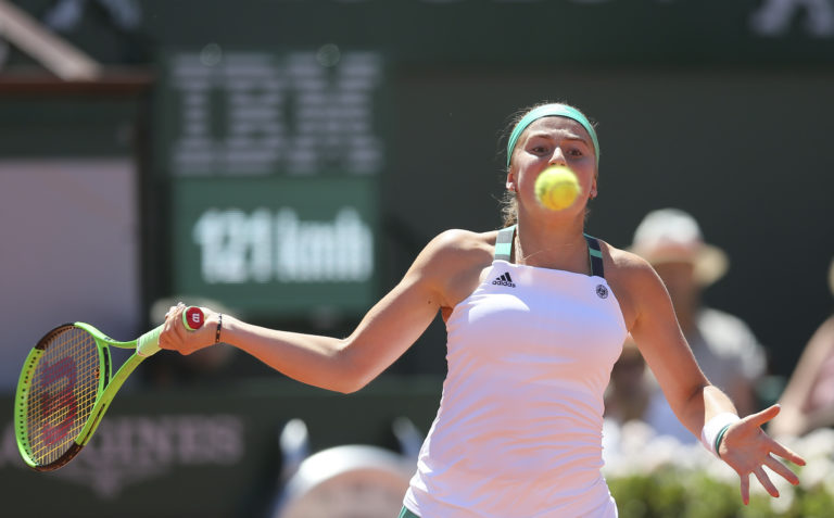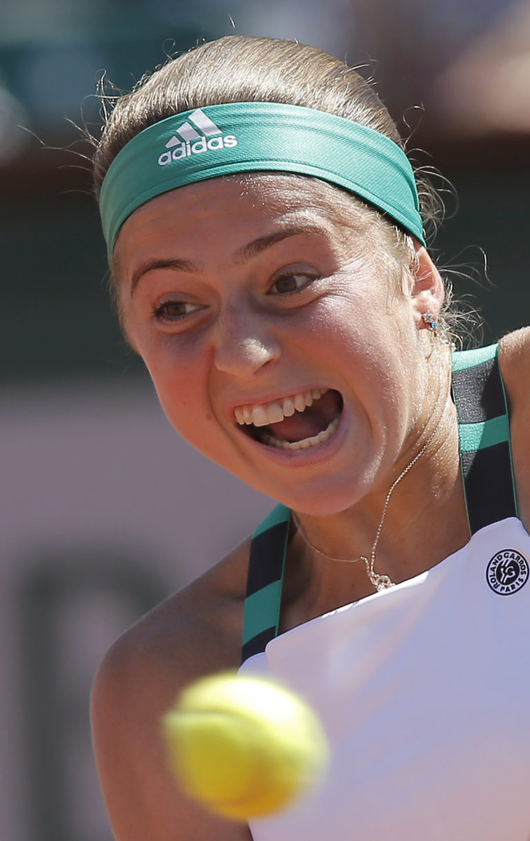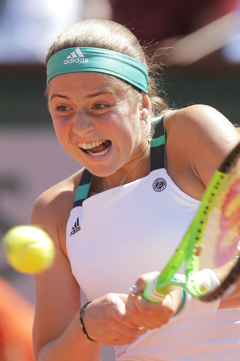 Lotyšská tenistka Jelena Ostapenková počas finálového zápasu Roland Garros, v ktorom zdolala Rumunku Simonu Halepovú 4:6, 6:4, 6:3. Paríž, 10. jún 2017. Foto: SITA/AP.