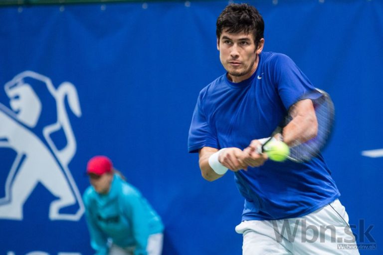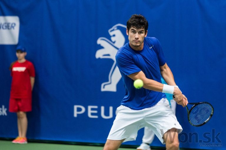 Nemecký tenista Peter Gojowczyk počas finále dvojhry mužov na turnaji ATP Challenger Tour Slovak Open proti uzbeckému tenistovi Farrukhovi Dustovovi. Bratislava, 9. november 2014. Foto: SITA/Jozef Jakubčo