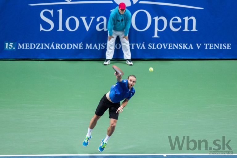 Uzbecký tenista Farrukh Dustov počas finále dvojhry mužov na turnaji ATP Challenger Tour Slovak Open proti nemeckému tenistovi Petrovi Gojowczykovi. Bratislava, 9. november 2014. Foto: SITA/Jozef Jakubčo