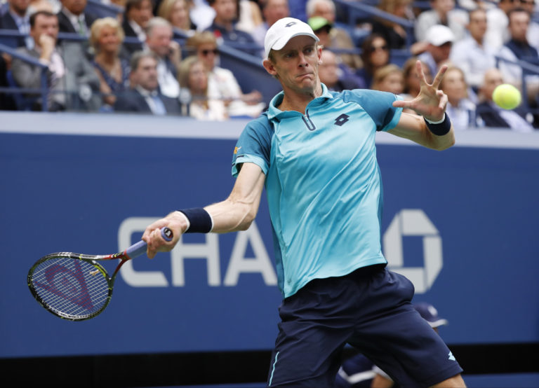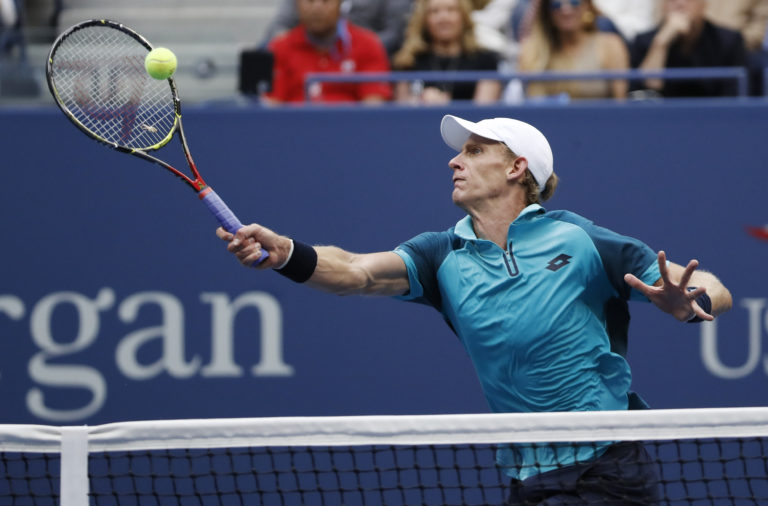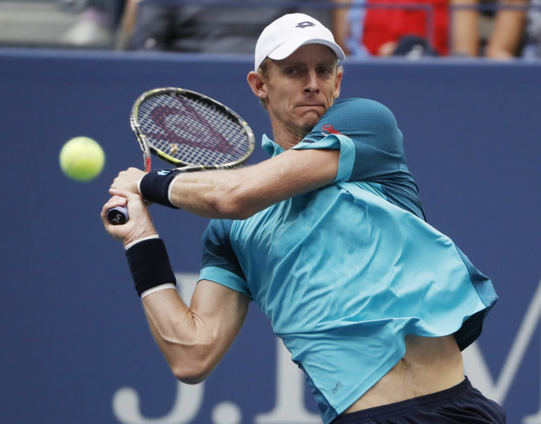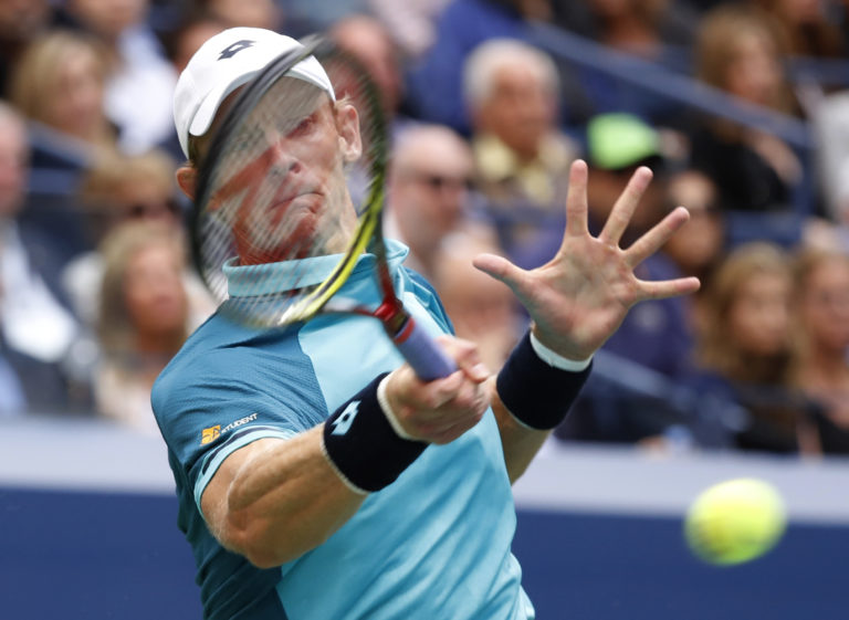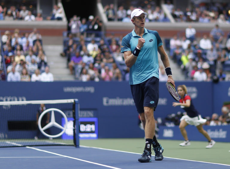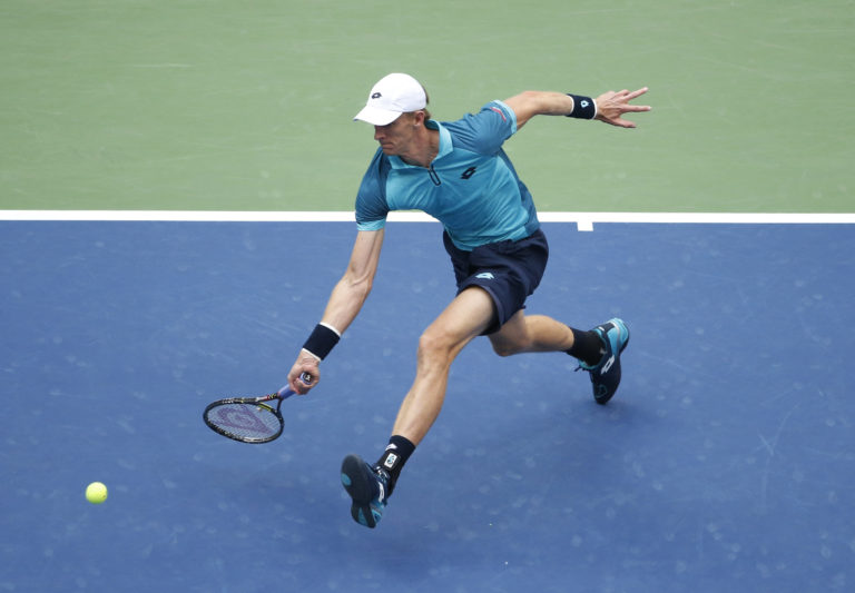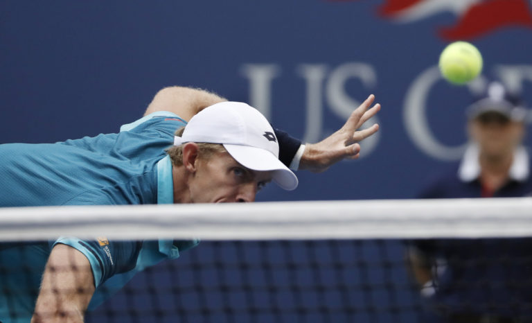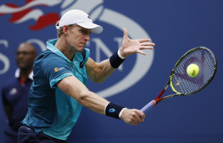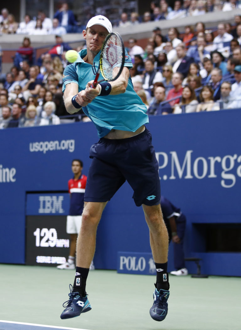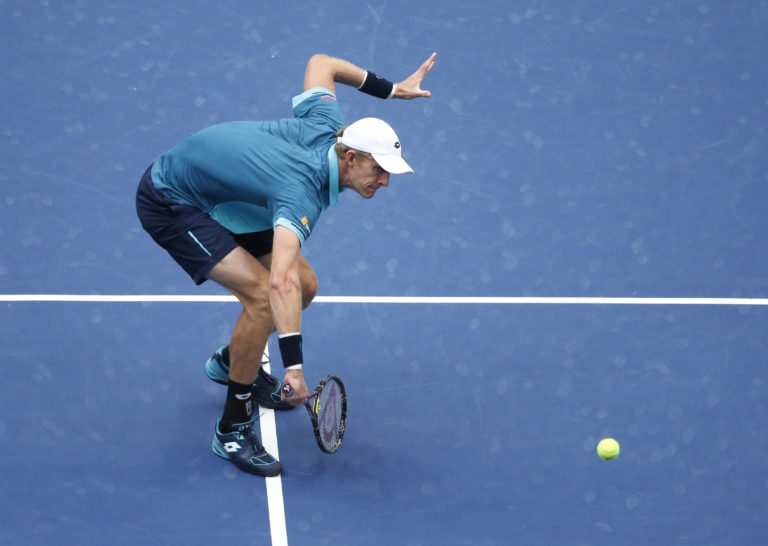 Juhoafrický tenista Kevin Anderson počas finálového zápasu na US Open, v ktorom podľahol Španielovi Rafaelovi Nadalovi 3:6, 3:6, 4:6. New York, 10. september 2017. Foto: SITA/AP