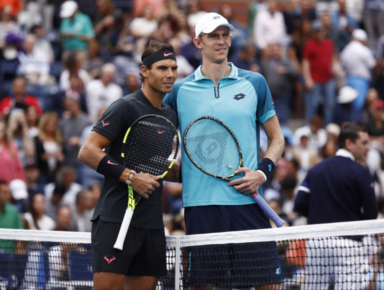 Španielsky tenista Rafael Nadal a Juhoafričan Kevin Anderson pred finálovým zápasom mužskej dvojhry na US Open. New York, 10. september 2017. Foto: SITA/AP.