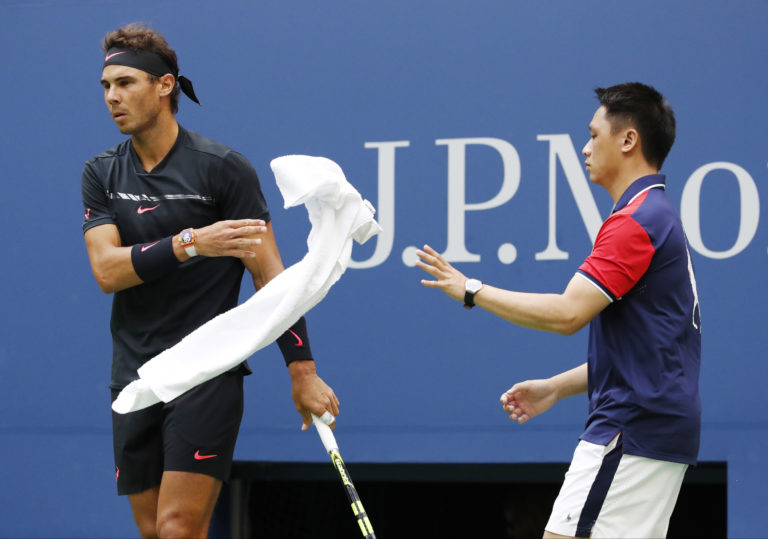 Zberač loptičiek počas finálového zápasu US Open medzi španielskym tenistom Rafaelom Nadalom a Juhoafričanom Kevinom Andersonom. New York, 10. september 2017. Foto: SITA/AP.