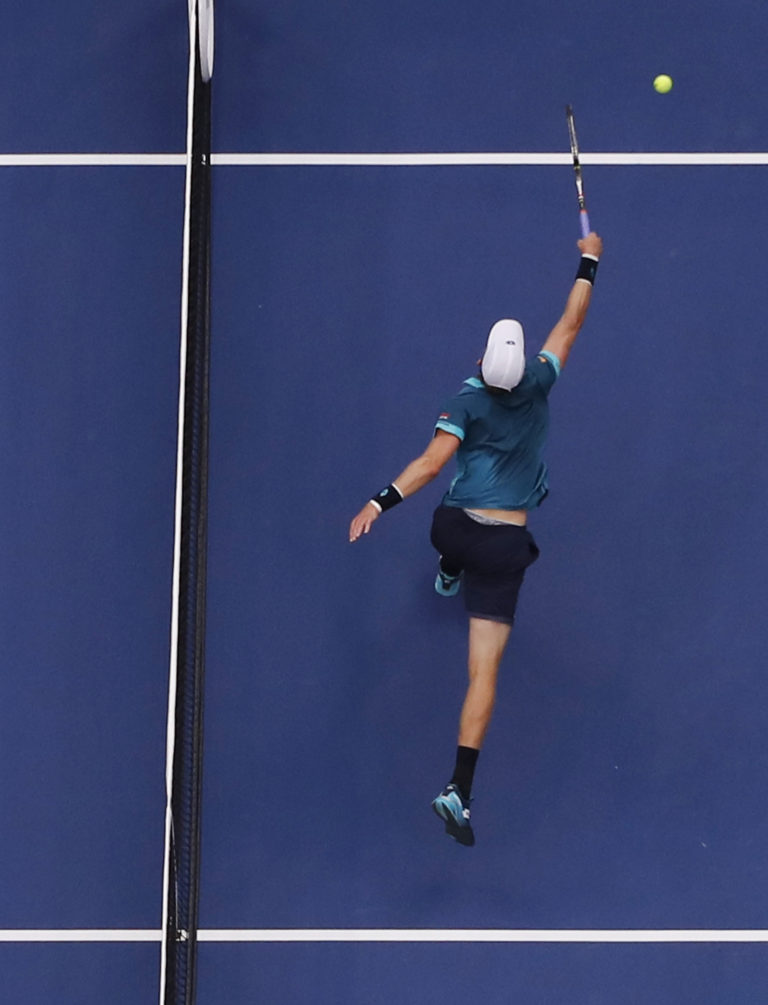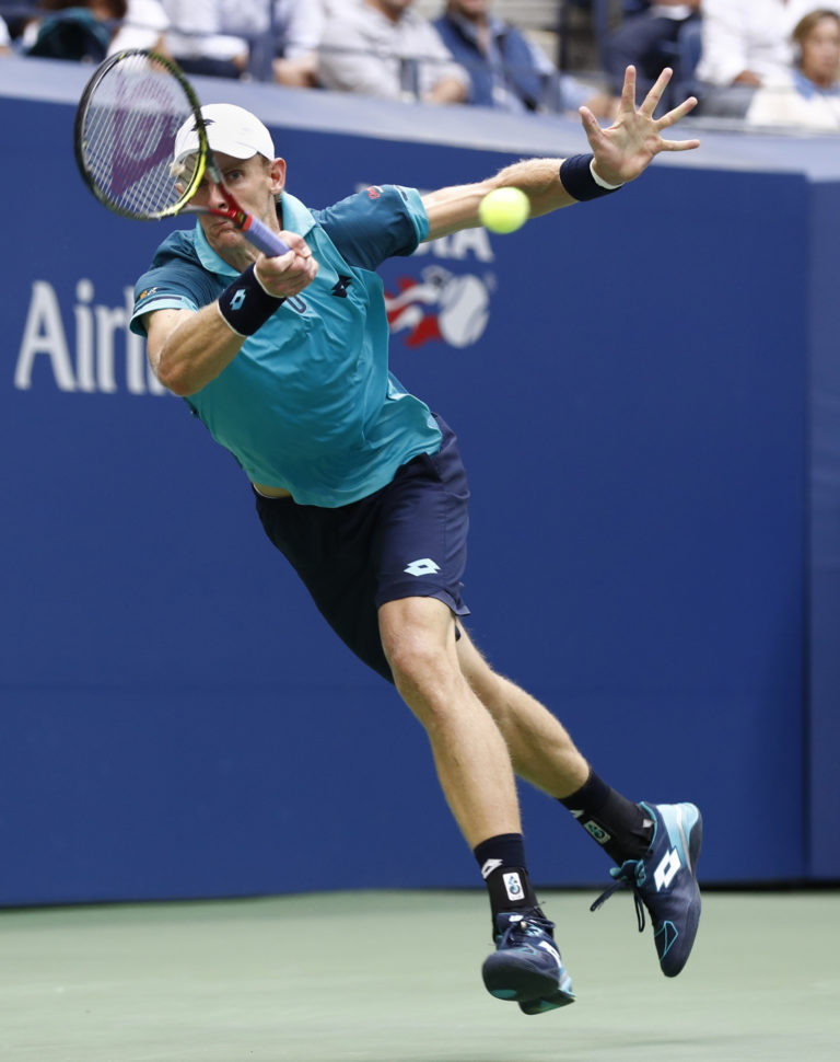 Juhoafrický tenista Kevin Anderson počas finálového zápasu na US Open, v ktorom podľahol Španielovi Rafaelovi Nadalovi 3:6, 3:6, 4:6. New York, 10. september 2017. Foto: SITA/AP.