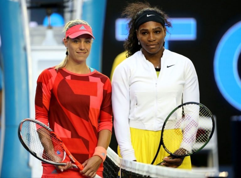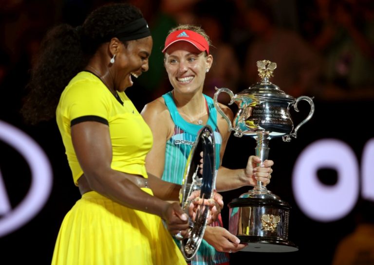 Zľava: Nemecká tenistka Angelique Kerberová a líderka svetového rebríčka Serena Williamsová pred finálovým zápasom ženskej dvojhry na Australian Open. Melbourne, 30. január 2016. Foto: SITA/AP