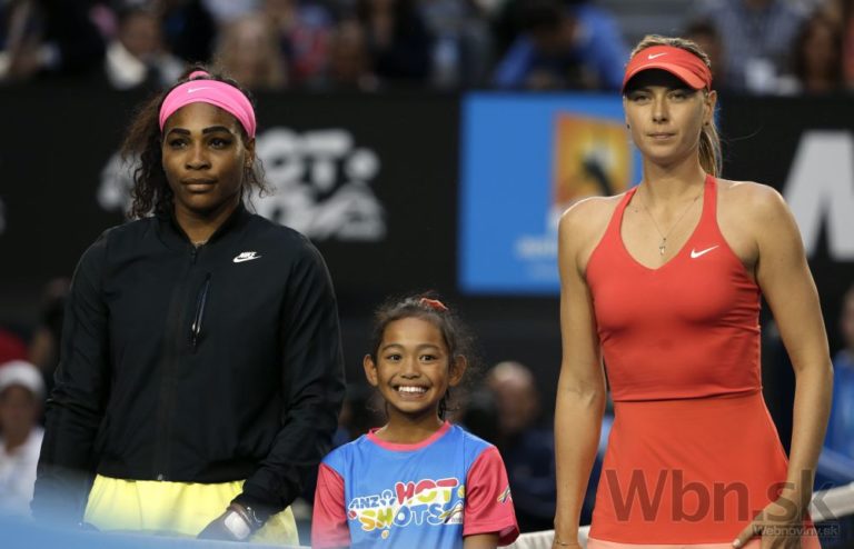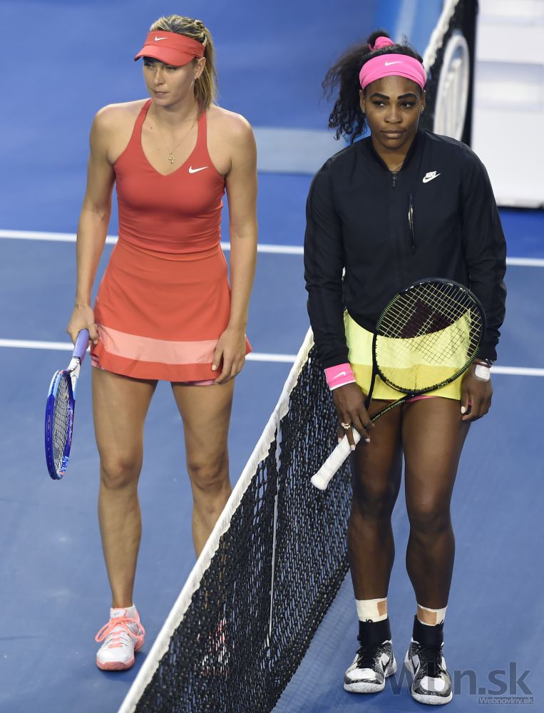 Zľava: Ruská tenistka Maria Šarapovová a Američanka Serena Williamsová pred finálovým zápasom Australia Open Melbourne, 31. január 2015. Foto: SITA/AP