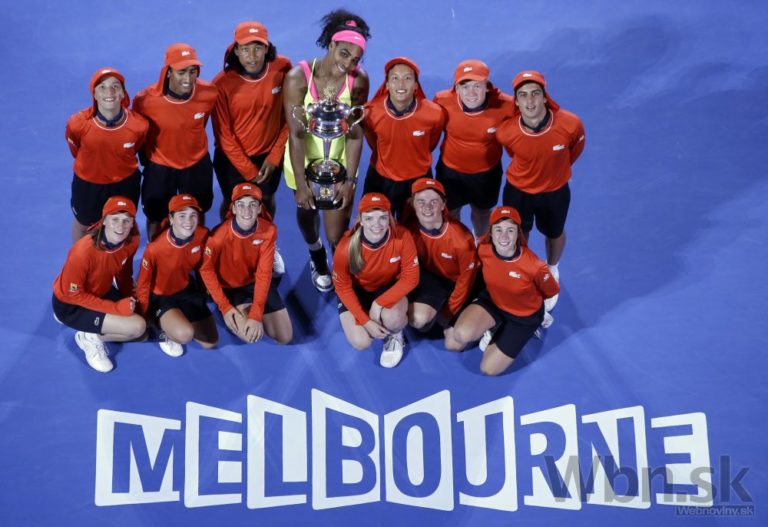 Americká tenistka Serena Williamsová s víťaznou trofejou po finálovom zápase Australian Open, v ktorom za 111 minút porazila Rusku Mariu Šarapovovú 6:3, 7:6 (5). Melbourne, 31. január 2015. Foto: SITA/AP