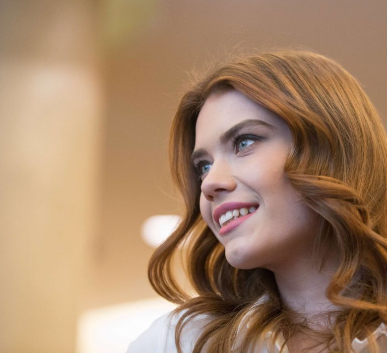 Finalistka súťaže Jana Kadvanová z Galanty s čílom 12 počas oficiálneho predstavenia finalistiek 23. ročníka súťaže krásy Miss Slovensko 2018. Bratislava, 1. február 2018. Foto: SITA/Branislav Bibel