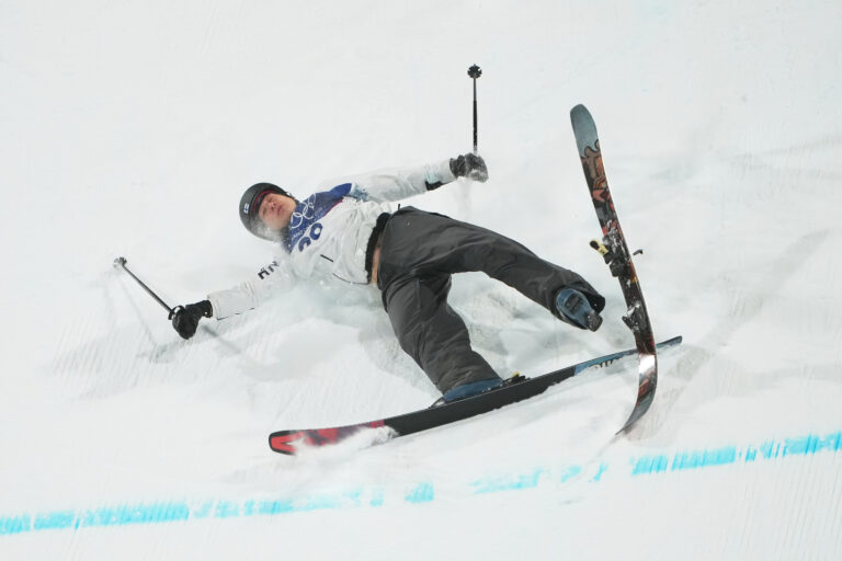 Na snímke fínsky freestyle lyžiar Elias Lajunen po tvrdom páde na ZOH 2026. Foto: SITA/AP Photo/Lindsey Wasson
