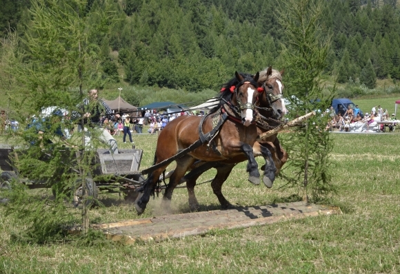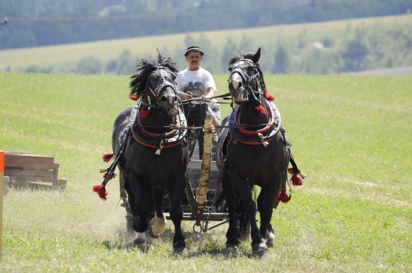Furmanský záprah počas súťaže furmanov v rámci dní obce Vikartovce. Vikartovce, 17. august 2013. Foto: SITA/Radoslav Maťaš
