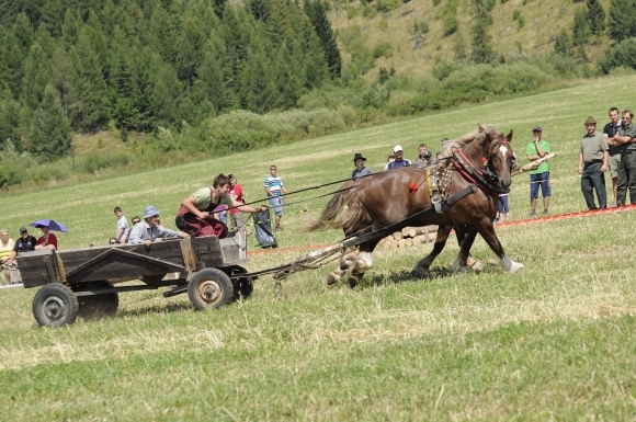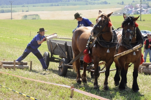 Súťažiaci furmani počas súťaže furmanov v rámci dní obce Vikartovce. Vikartovce, 17. august 2013. Foto: SITA/Radoslav Maťaš