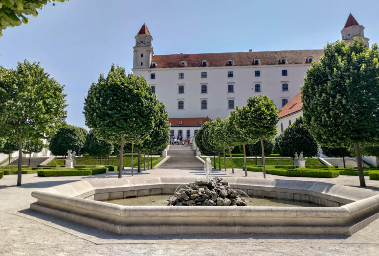 Dekoratívna fontána v Barokovej záhrade na Bratislavskom hrade. Bratislava, 13. jún 2025. Foto: SITA/Andrea Mezeiová