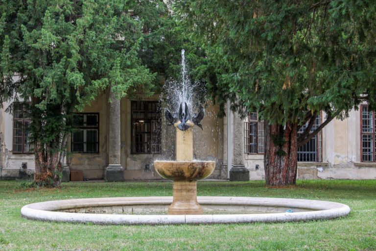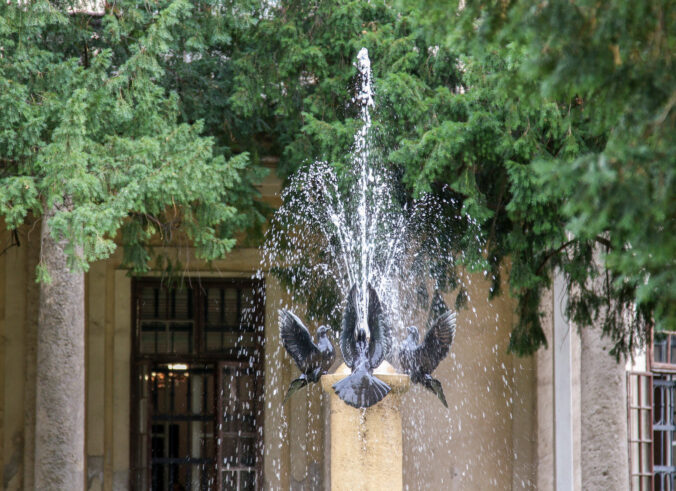 Holubia fontána v Medickej záhrade, v časti patriacej k areálu Dekanátu Lekárskej fakulty Univerzity Komenského v bratislavskom Starom Meste. Bratislava, 16. júl 2025. Foto: SITA/Andrea Mezeiová