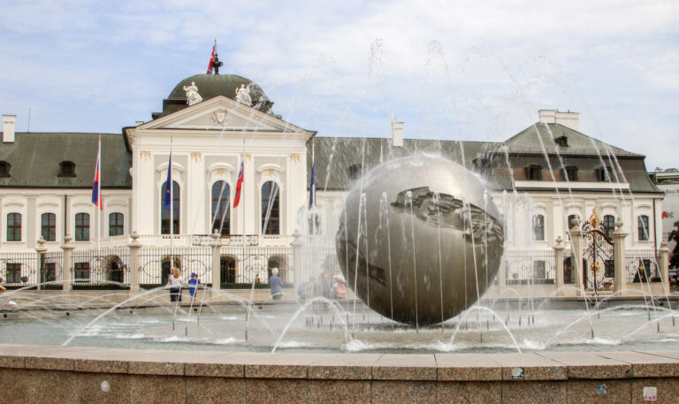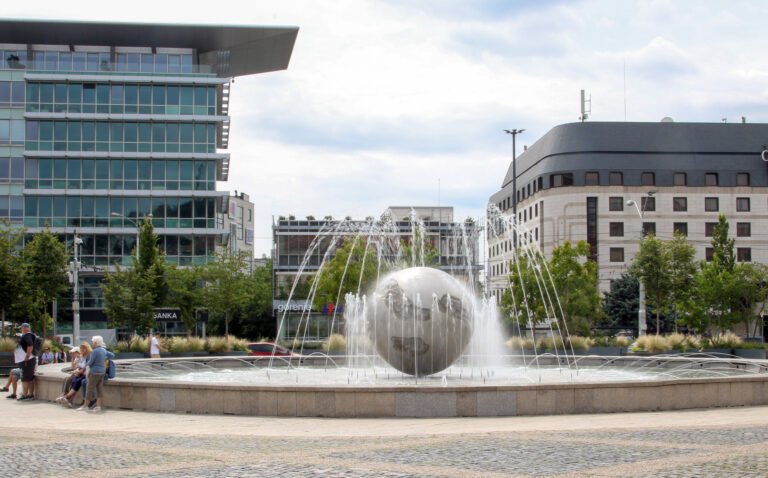 Fontána Planéta mieru na Hodžovom námestí v bratislavskom Starom Meste. Bratislava, 16. júl 2025. Foto: SITA/Andrea Mezeiová